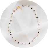Halskette PHOEBEEntdecke die handgefertigten Gliederketten, die mit lebendigen bunten Edelsteinen und zarten Süßwasserperlen verziert sind. Jede Kette ist ein Unikat und bringt Farbe und Eleganz in deine Outfits. Lass dich von der Vielfalt der Edelstein Kette inspirieren und finde deinen neuen Liebling!- €34,00