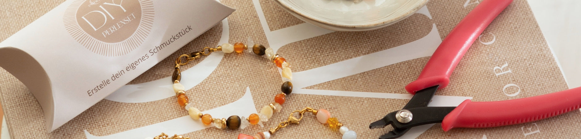 Gönn dir eine kreative Auszeit – ganz gemütlich Zuhause!Mit dem eunoia DIY-Set gestaltest du dein eigenes, hochwertiges Perlenarmband mit Verschluss. Schritt für Schritt begleite ich dich mit einer persönlichen Video-Anleitung durch den gesamten Prozess und am Ende hältst du ein Schmuckstück in den Händen,...- €27,00