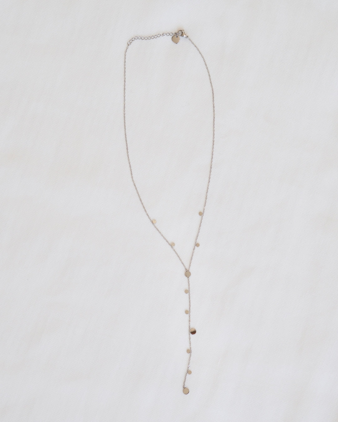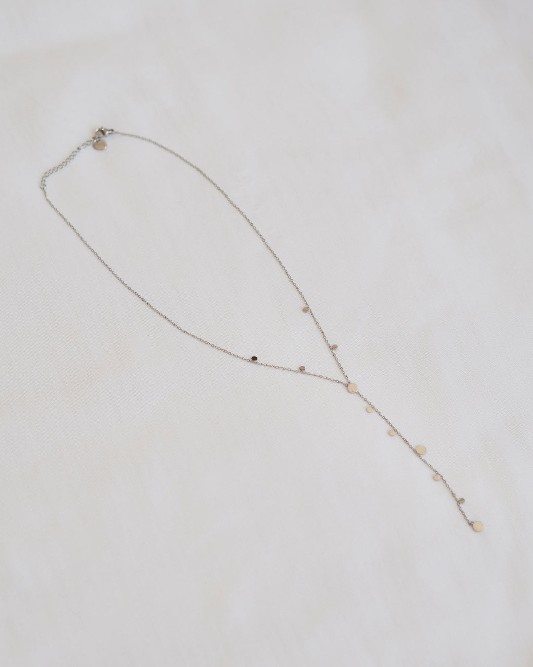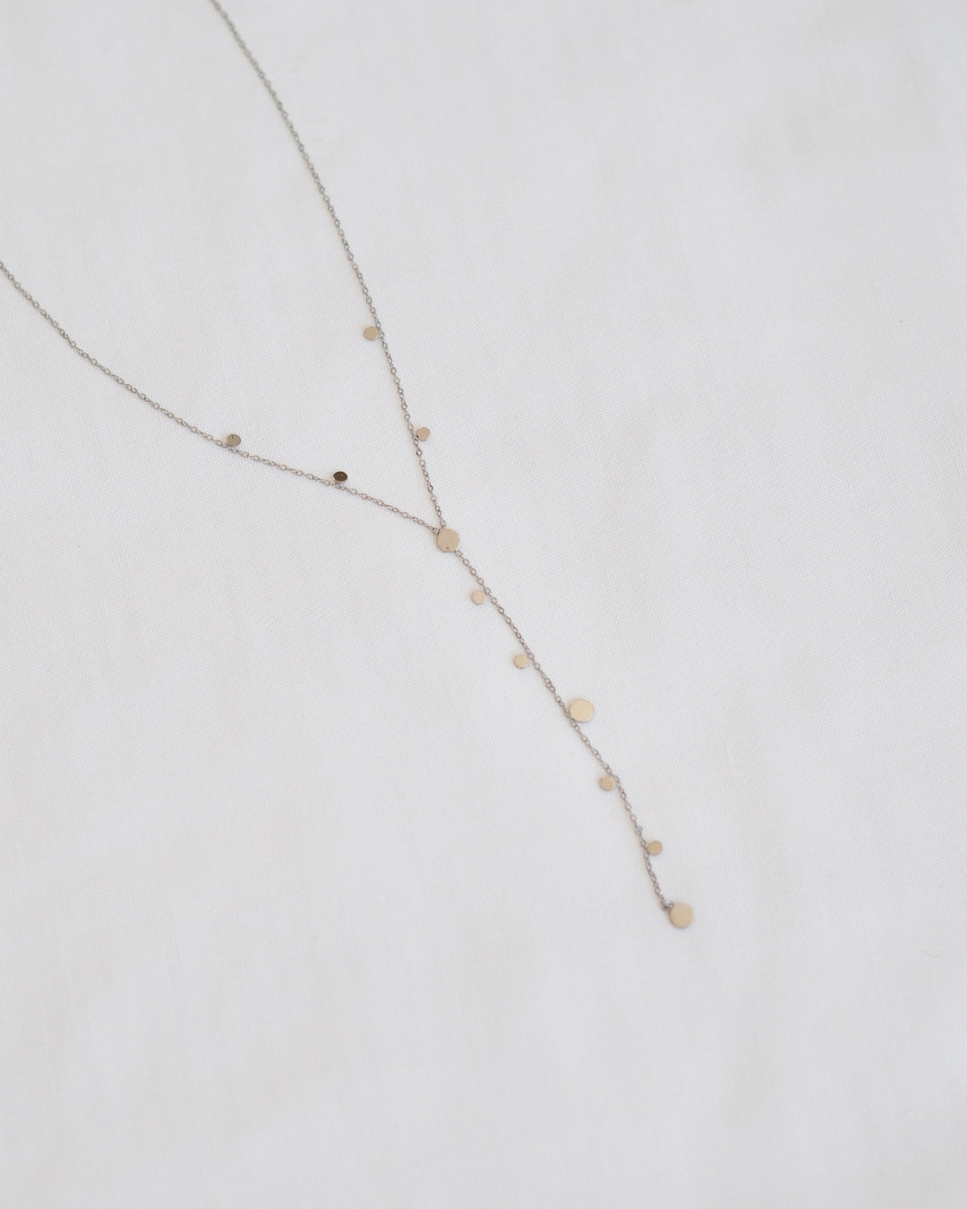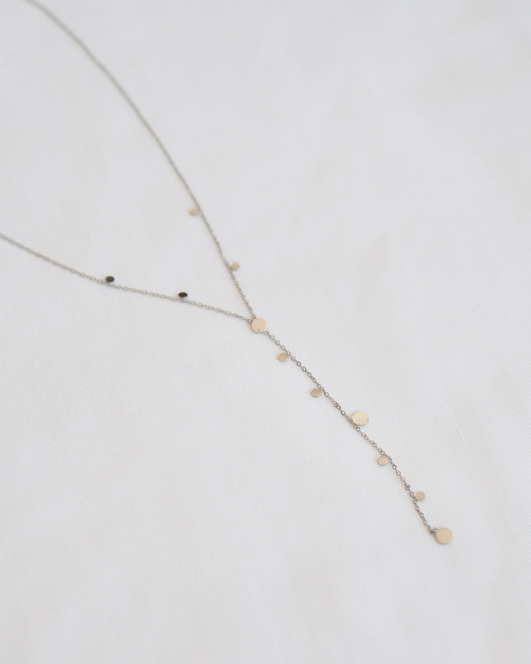 Diese filigrane Lariat-Halskette in Silber ist das perfekte Schmuckstück für alle, die minimalistischen, modernen Schmuck lieben. Die zarten, glänzenden Plättchen setzen subtile Akzente und fangen das Licht bei jeder Bewegung ein – für einen edlen, femininen Look, der sowohl im Alltag als auch zu besonderen Anlässen ideal ist.